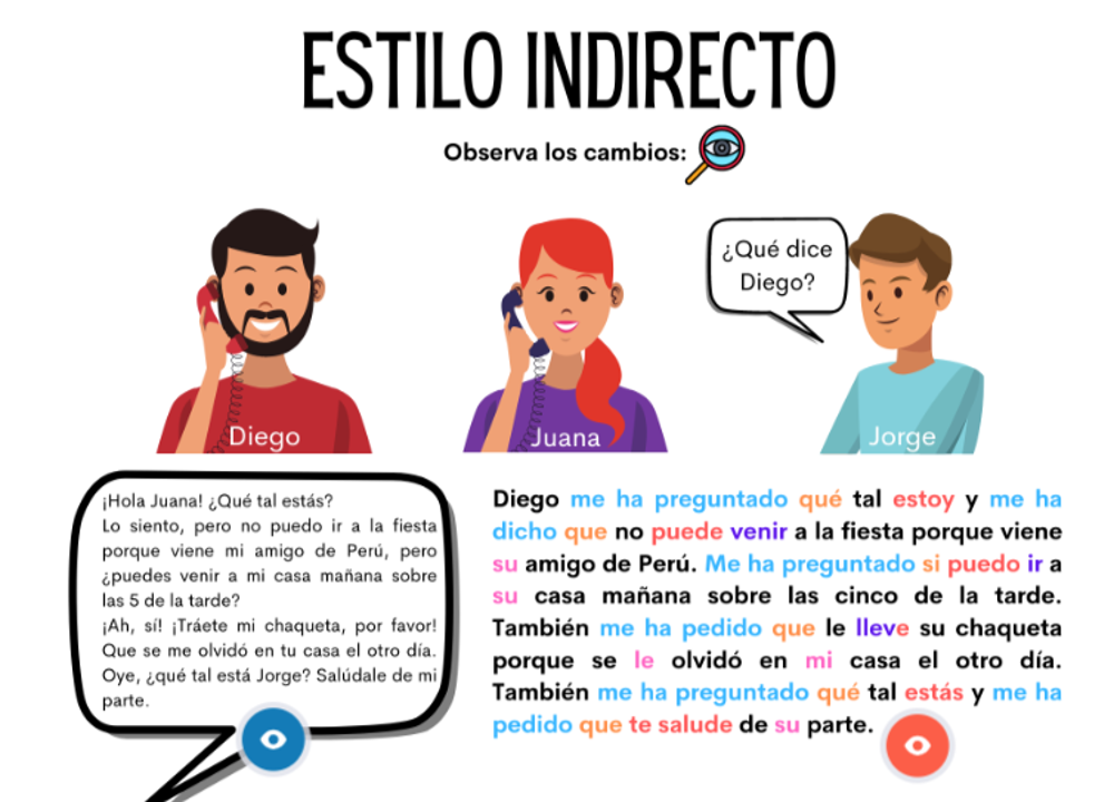 ¡Hola, chicos! ¿Qué tal?  Espero que estéis genial. ¡Fue una clase difÃcil pero lo hicisteis muy bien! A continuación os dejo el resumen de nuestra clase. Deberes Libro de actividades, páginas 21 y 26: Repaso del estilo indirecto Hicimos un repaso exhaustivo del Estilo Indirecto: El estilo indirecto se usa para transmitir lo que otra...